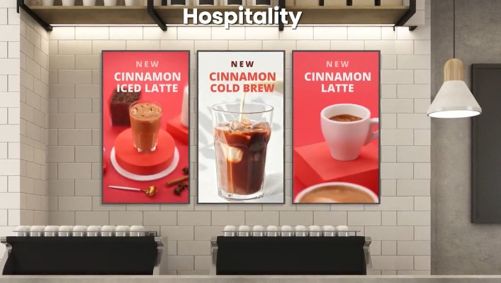 | HoReCa (кафе, рестораны, отели) | 32″, 43″, 50″, 55″ | Цифровое меню (меню-борды) над стойкой, информационные панели в лобби отеля, трансляция завтраков, анонсов мероприятий. Вертикальная ориентация идеальна для меню. |