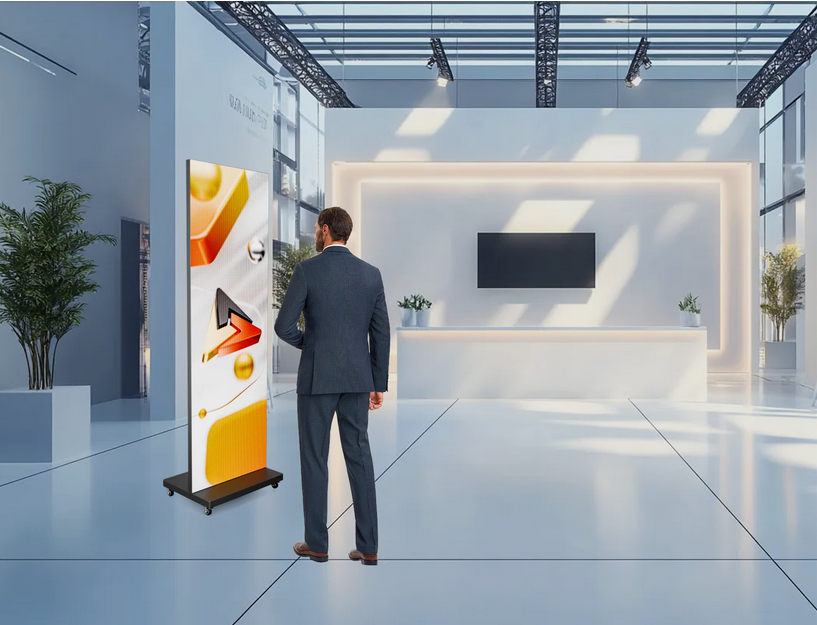 Можно расположить устройства как в портретном режиме, так и в горизонтальном, формируя уникальные композиции, которые идеально подойдут практически для любых задач. LED видеопилон производства BM Group преобразит пространство с помощью захватывающей внимание стены видео-контента и станет центром притяжения зрителей.