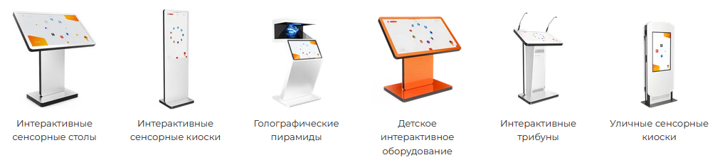 В нашем каталоге вы найдете широкий выбор интерактивных устройств: от сенсорных панелей и столов до киосков самообслуживания, интерактивных дисплеев и голографических пирамид. Эти решения помогут вам адаптировать технологические процессы под уникальные требования.