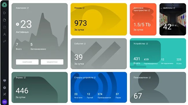 - Меняет контент на 1000 экранах за 1 минуту;