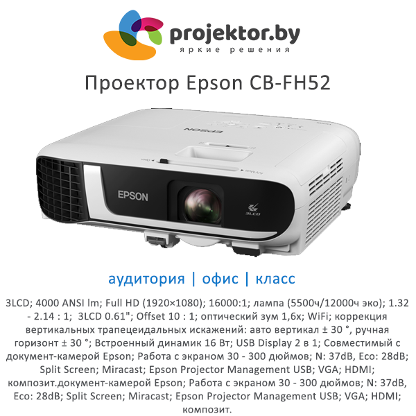Полная спецификация проектора Epson CB-FH52>>>