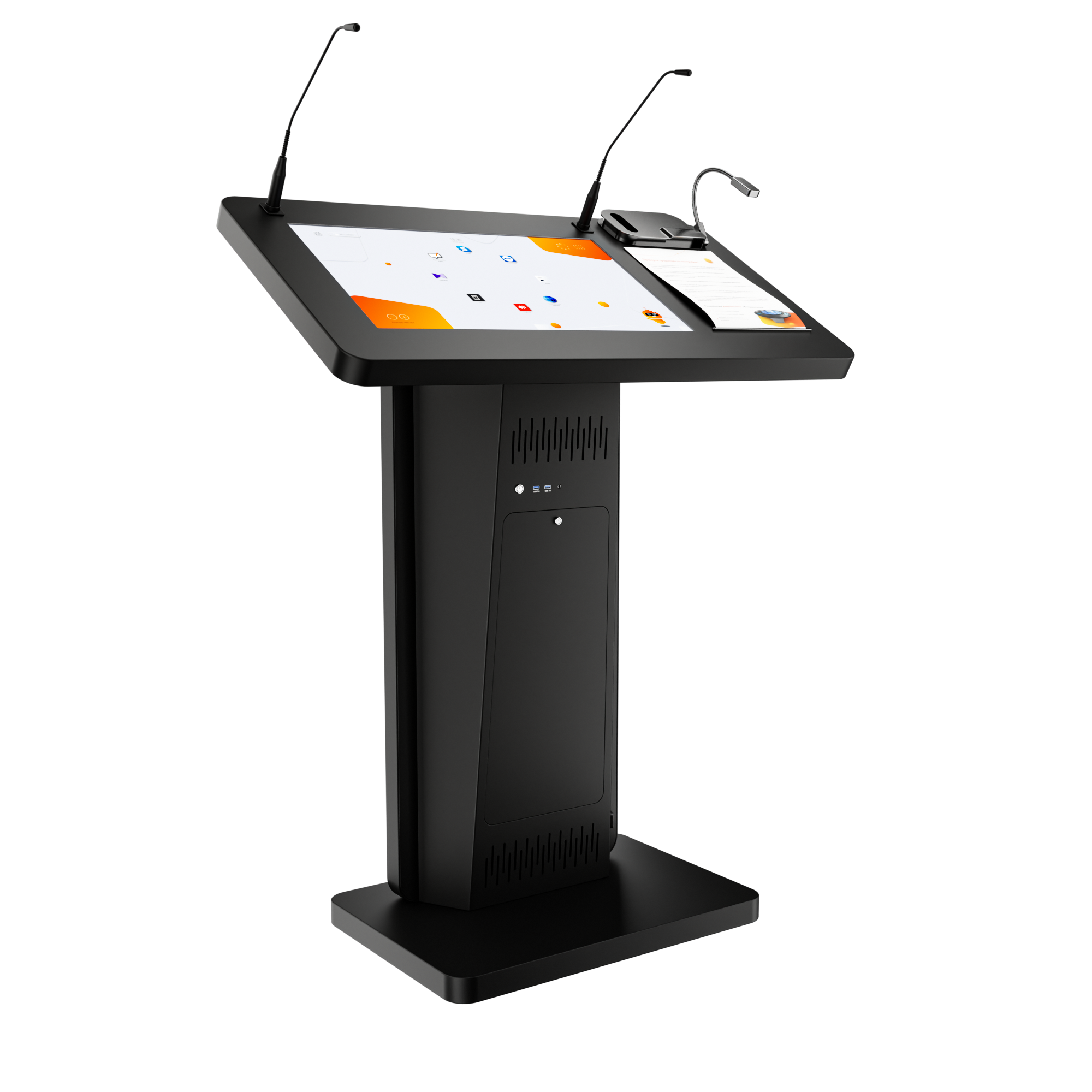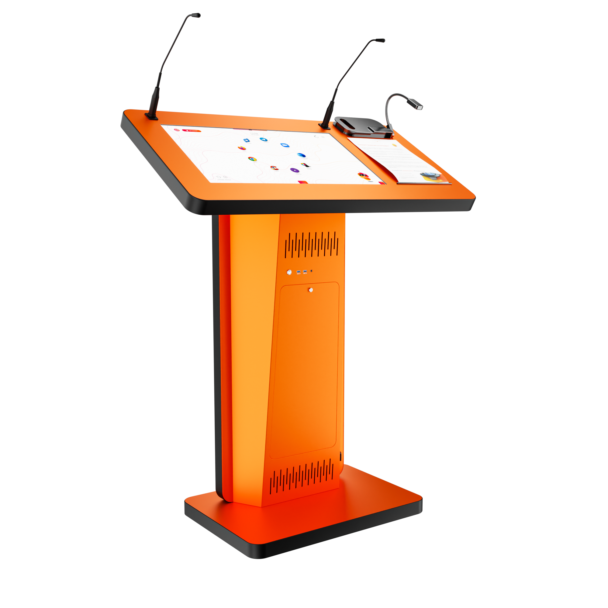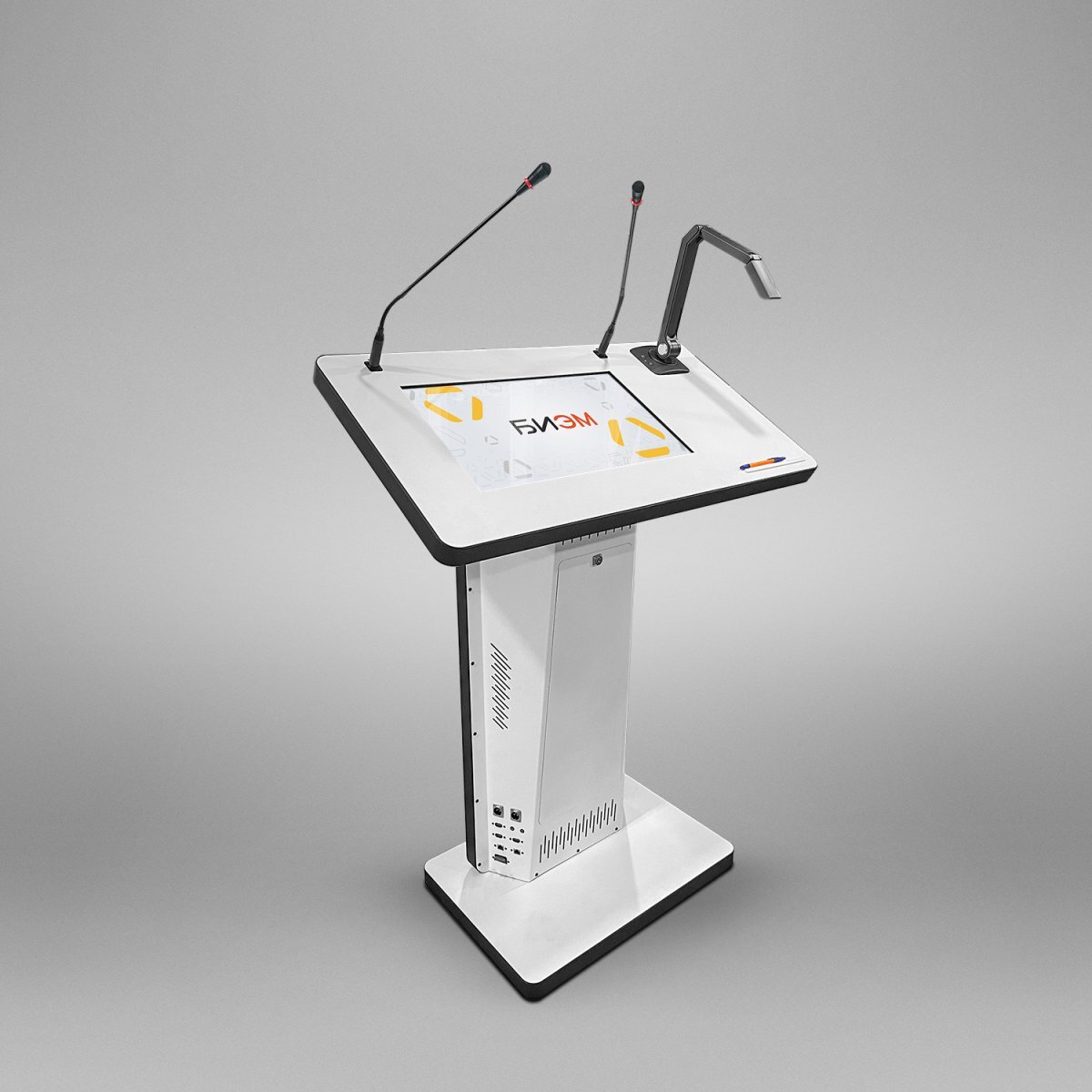 Главная задача интерактивной трибуны - упростить выступление спикера на конференции или лектора в аудитории. Мы разработали универсальный мультимедийный комплекс для лекций и презентаций, который включает сенсорный дисплей, микрофоны, набор всех необходимых разъемов для подключения оборудования. В одном устройстве – все, что нужно для интересных и наглядных лекций!