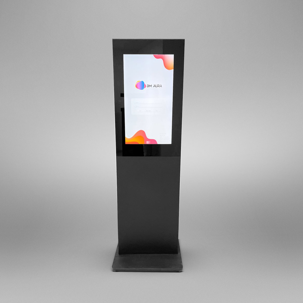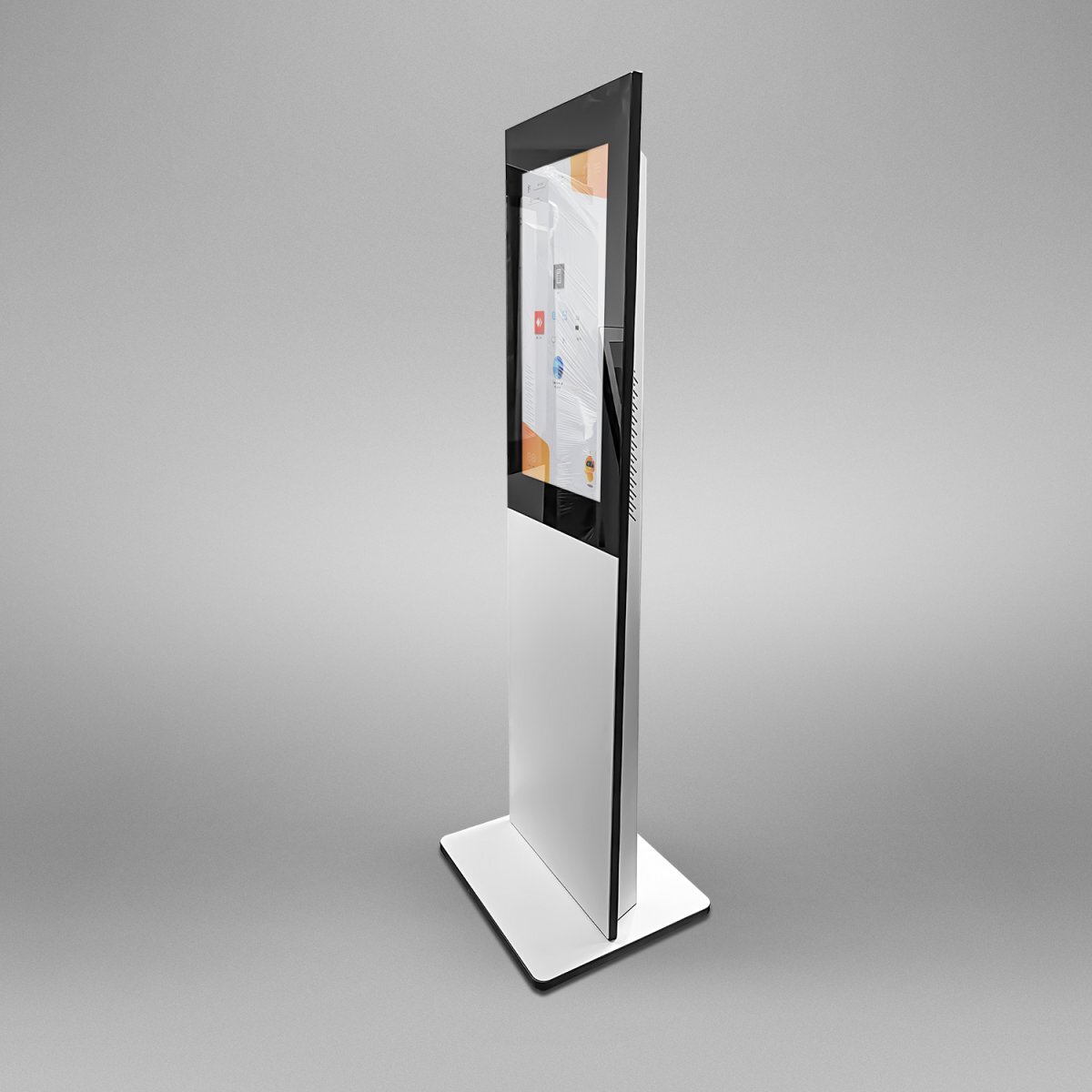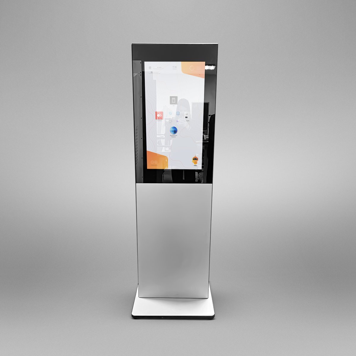 Новый интерактивный сенсорный киоск в классическом форм-факторе: стальной антивандальный корпус, стильный, современный минималистичный дизайн, дисплей.