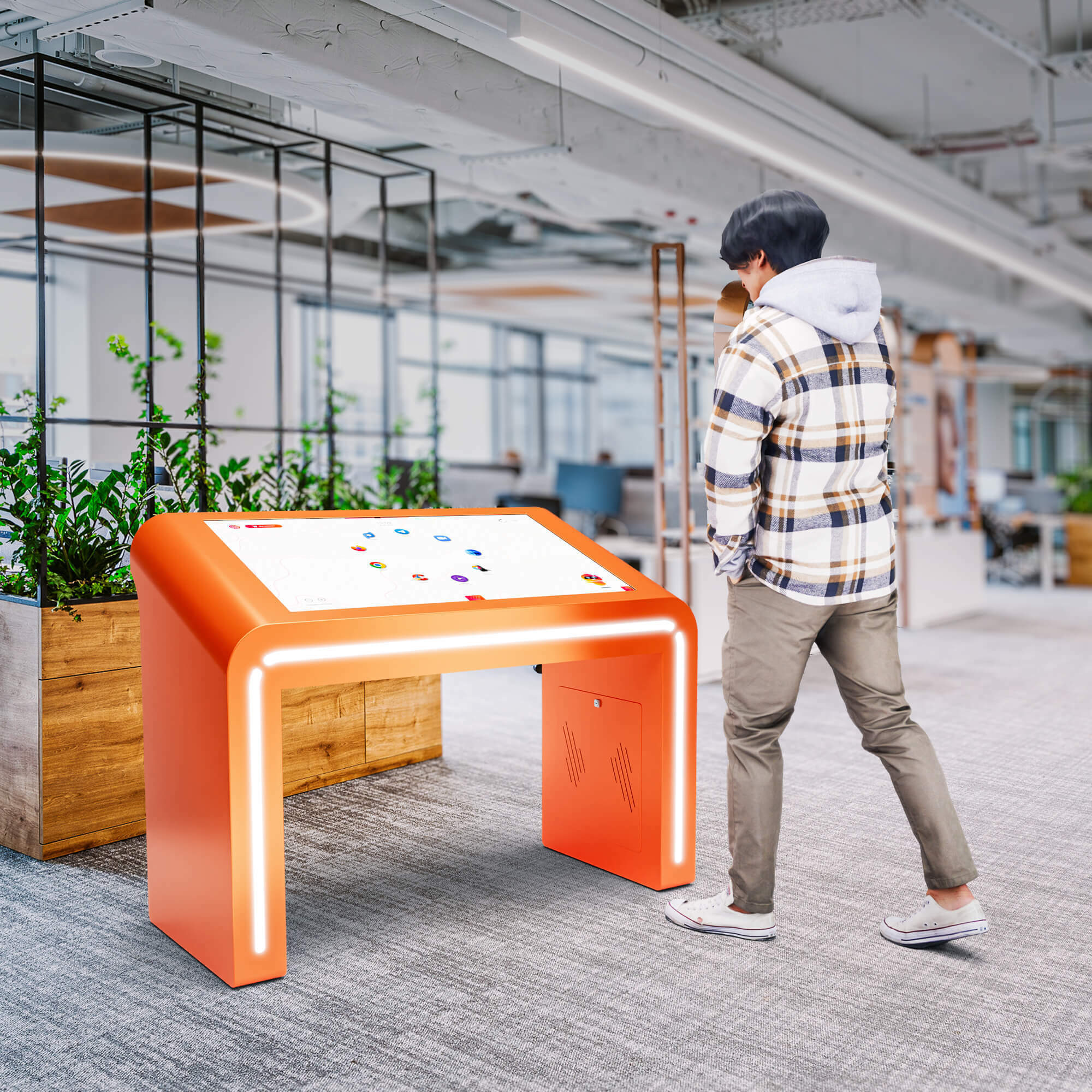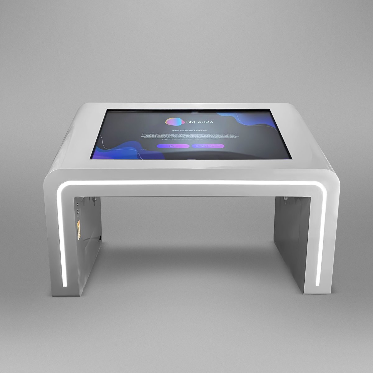 Интерактивный стол ATOM - лидер модельной линейки сенсорных столов компании BM GROUP "Фабрика Инноваций". Мы сконструировали его, опираясь на ключевые принципы эргономики, включая оптимальный угол наклона дисплея для удобства использования. В красивом корпусе из металла есть аудиосистема, система охлаждения, адаптер Wi-Fi.