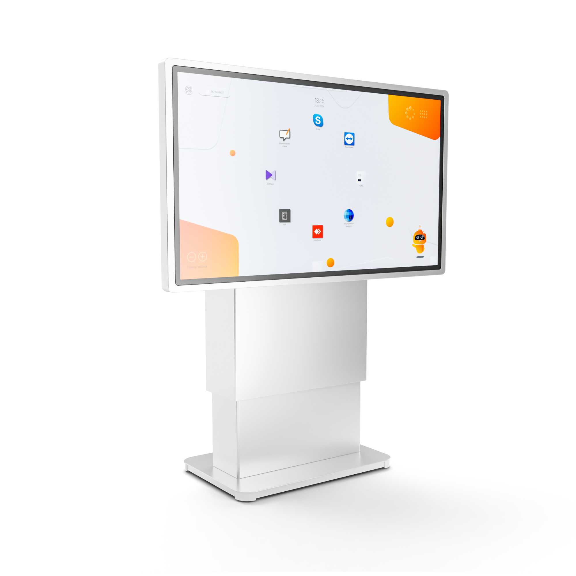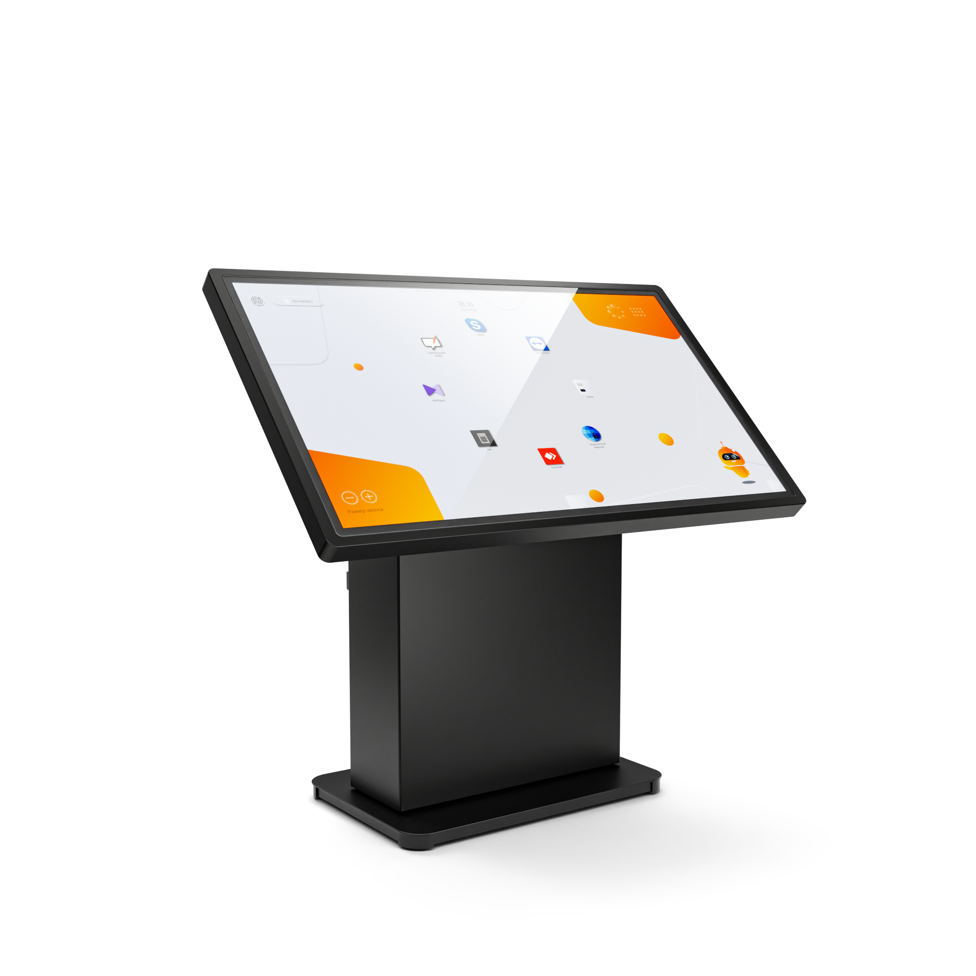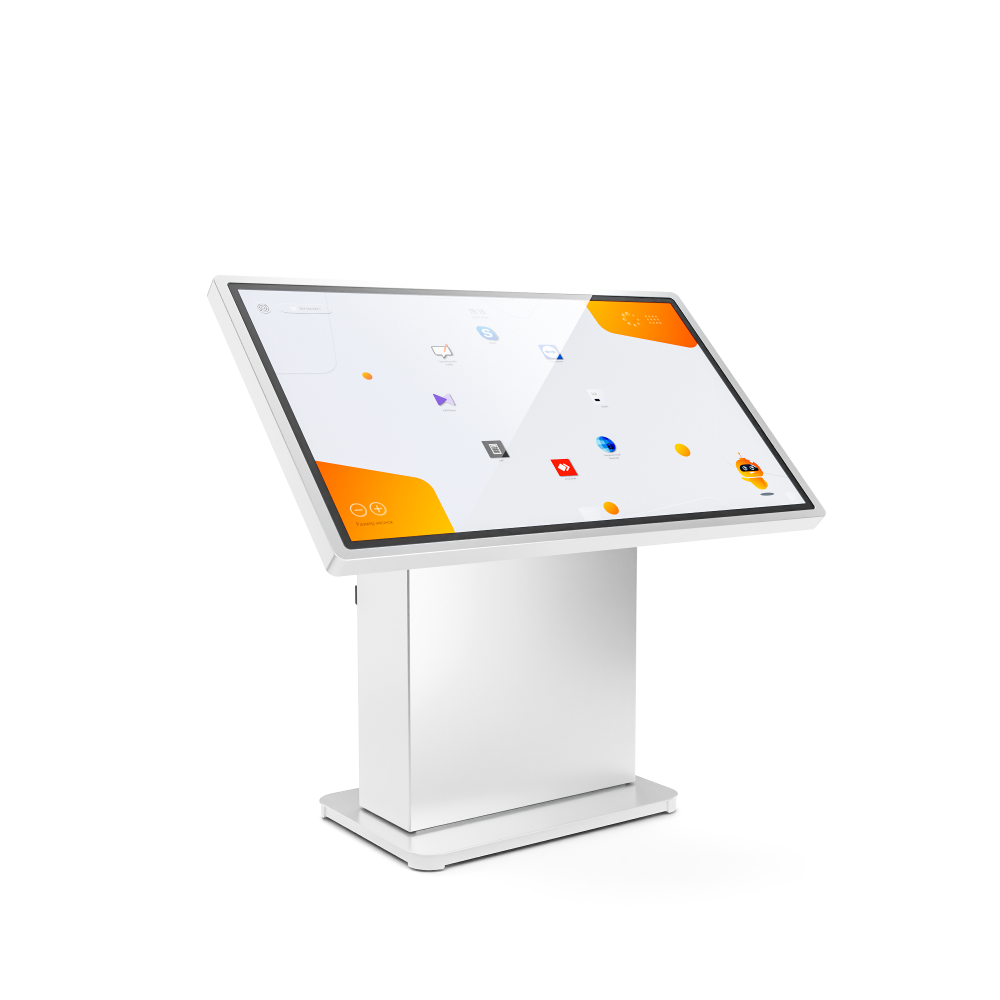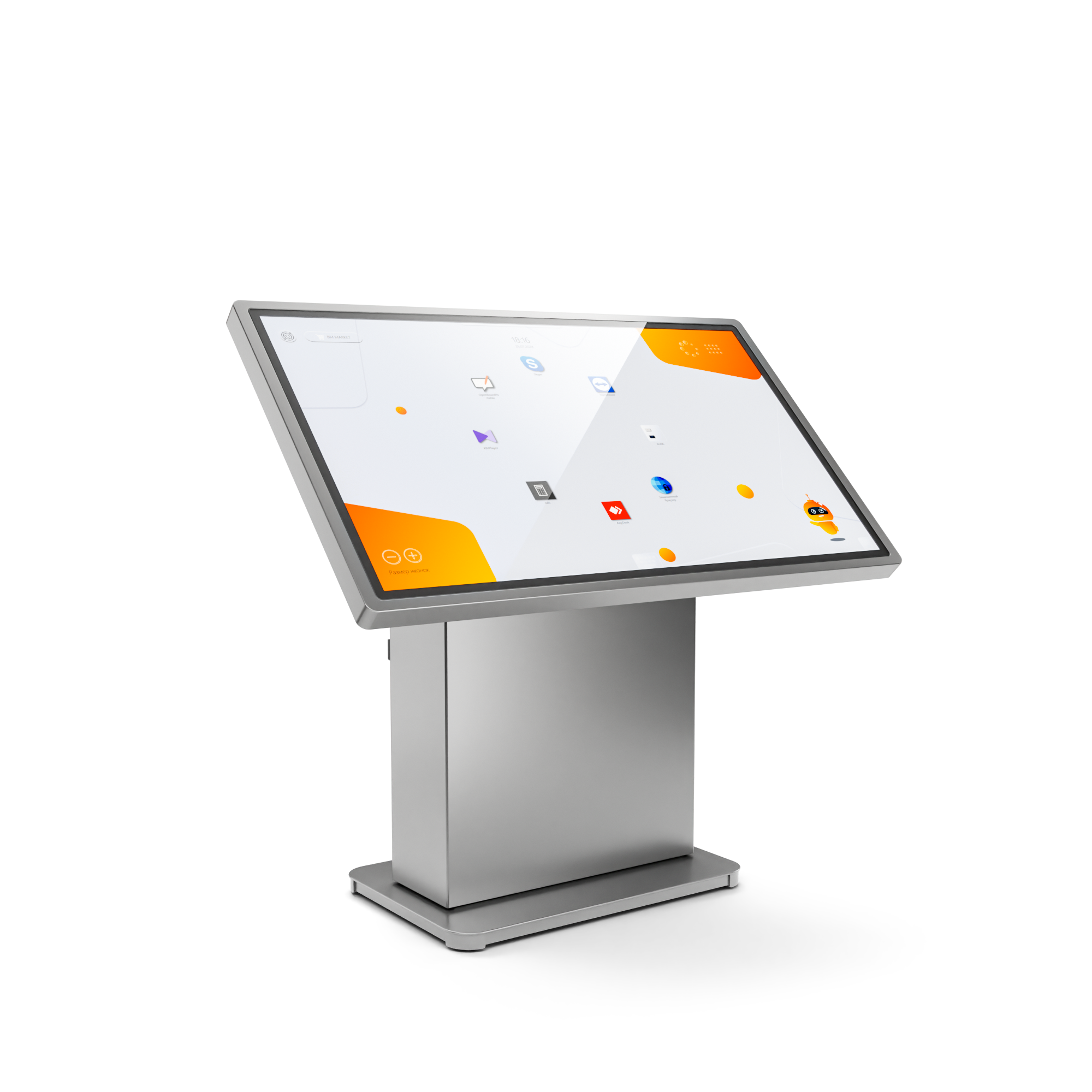Это многофункциональное мультимедийное устройство для широкого применения – в образовательных, государственных или социальных учреждениях, в бизнес- и торгово-развлекательных центрах. Для максимально комфортного использования высоту стола и угол наклона экрана можно изменять автоматически вплоть до полностью вертикального положения.