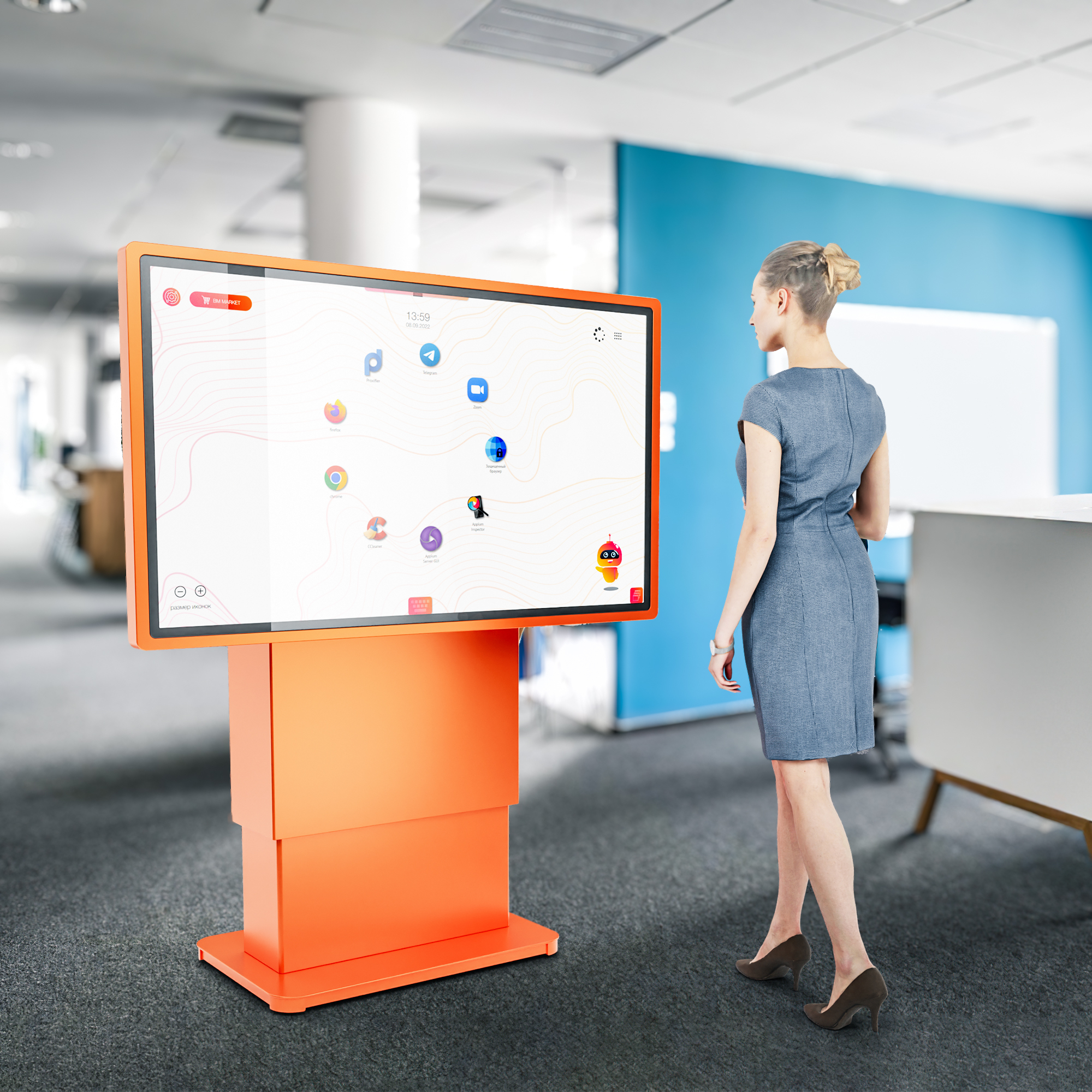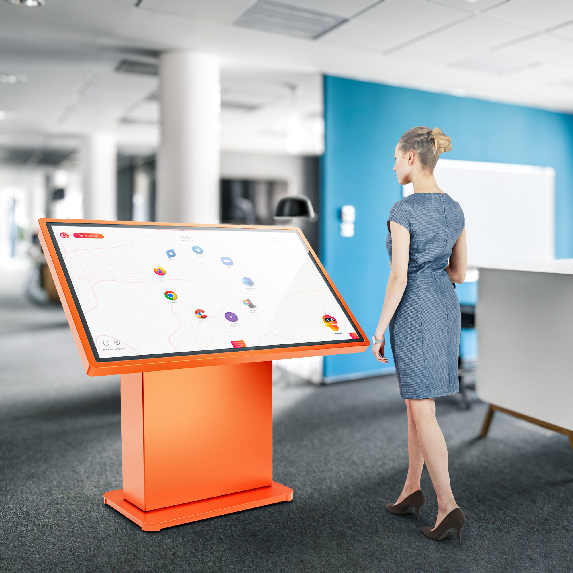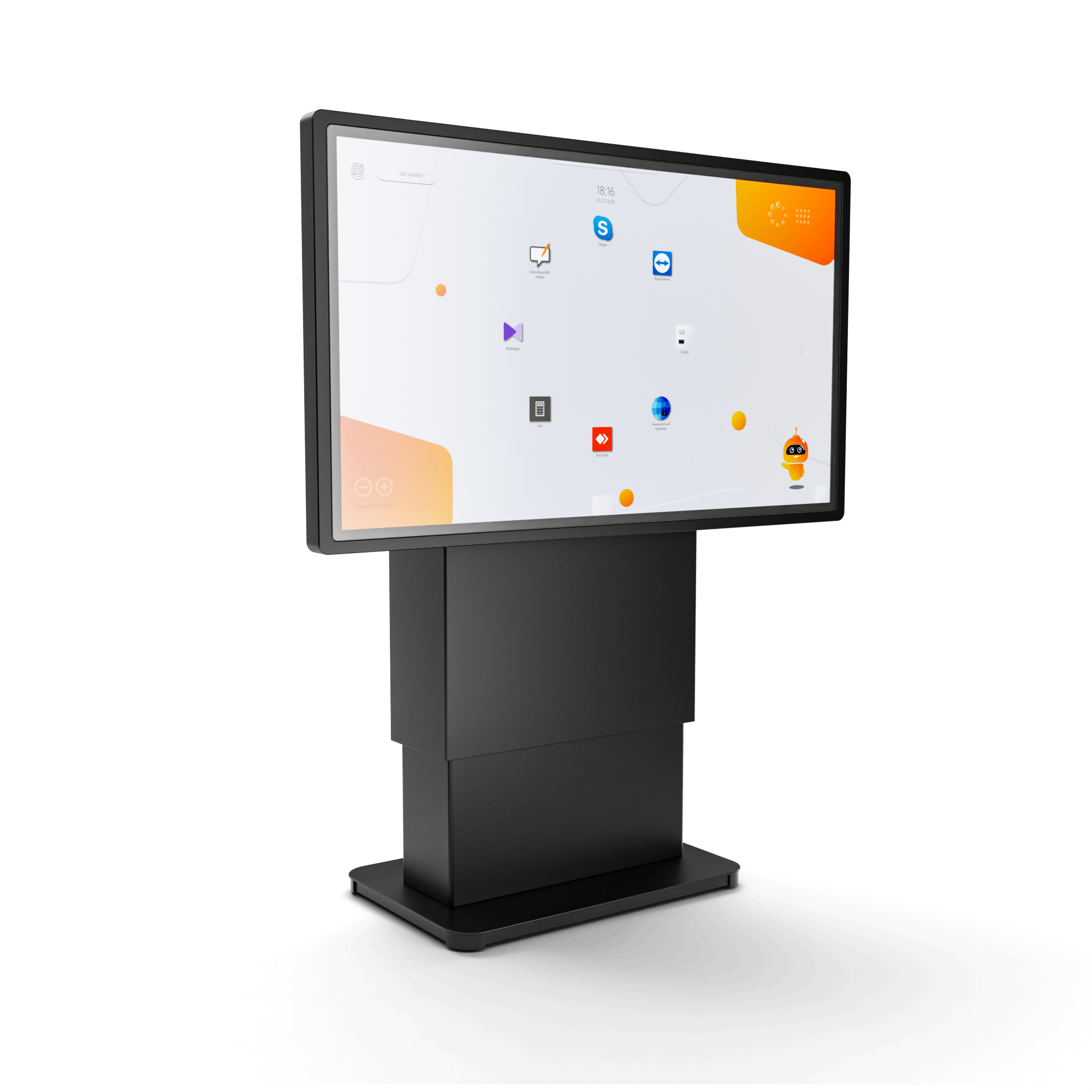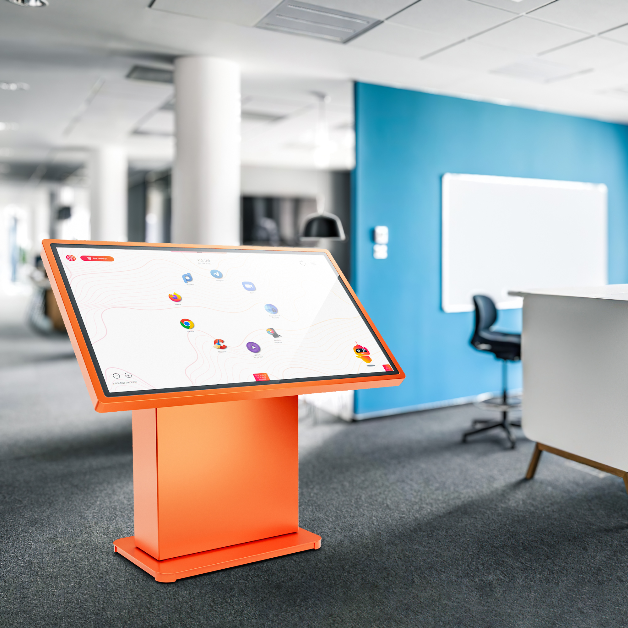 Это многофункциональное мультимедийное устройство для широкого применения – в образовательных, государственных или социальных учреждениях, в бизнес- и торгово-развлекательных центрах. Для максимально комфортного использования высоту стола и угол наклона экрана можно изменять автоматически вплоть до полностью вертикального положения.