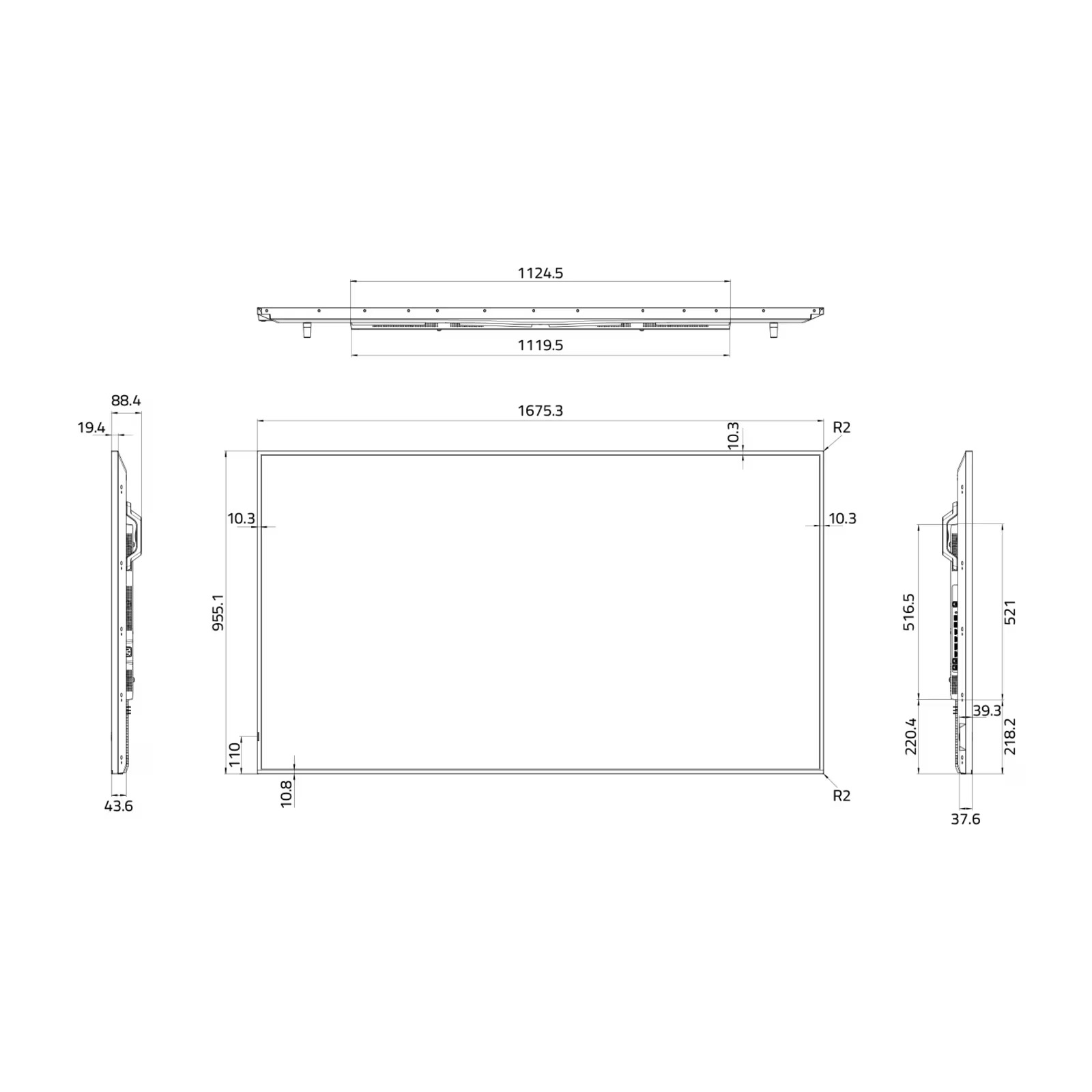 Благодаря узкой рамке и симметричному дизайну дисплей с легкостью впишется в любую обстановку. Все контакты выведены наружу, благодаря чему дисплей висит вплотную к стене, что экономит место и облегчает установку.