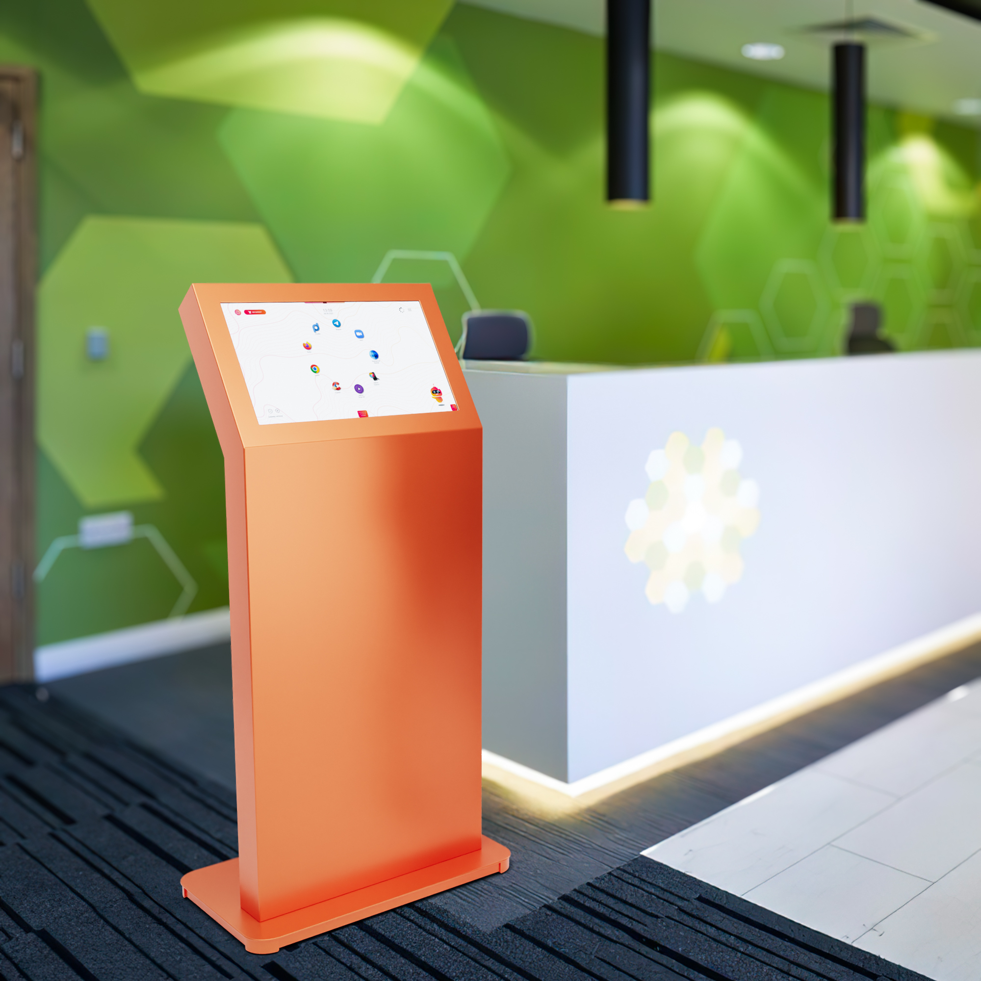 Все гениальное просто, как и наш многофункциональный киоск с сенсорным дисплеем. Он установлен под углом для максимально удобного использования. К киоску можно подключать любое дополнительное оборудование: от сканера штрих- и QR-кодов до антивандальной клавиатуры.