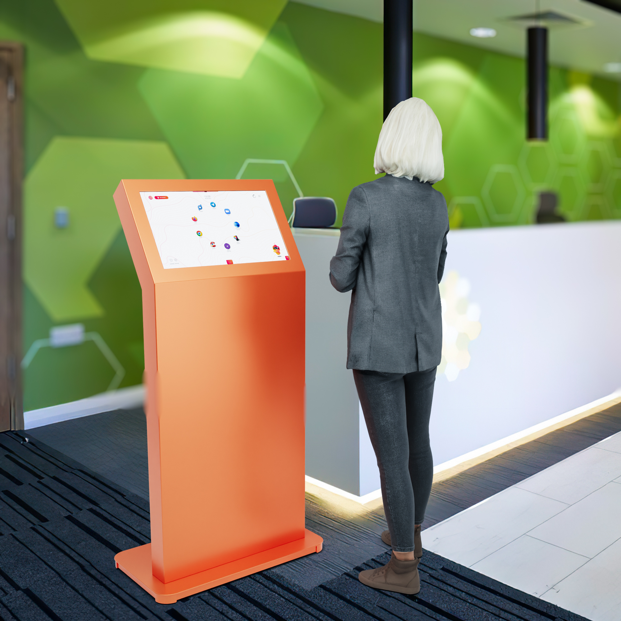 Все гениальное просто, как и многофункциональный киоск с сенсорным дисплеем. Он установлен под углом для максимально удобного использования. К киоску можно подключать любое дополнительное оборудование: от сканера штрих- и QR-кодов до антивандальной клавиатуры.